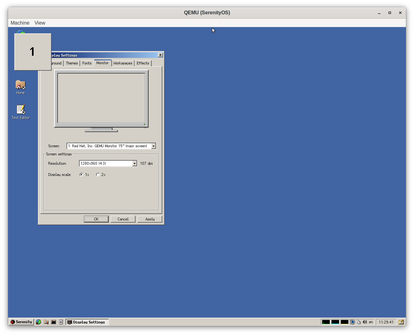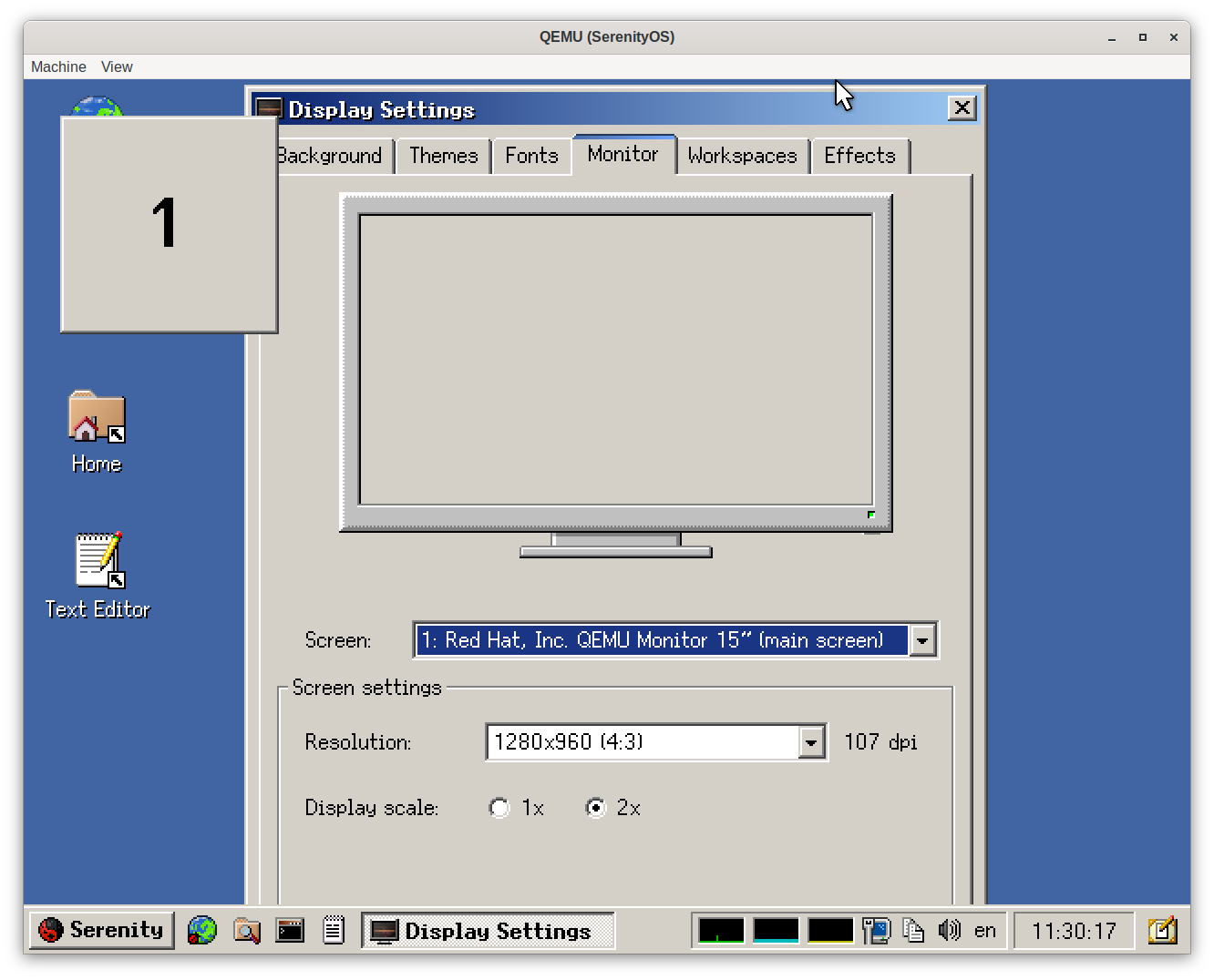 When testing SerenityOS the other day, I noticed something very interesting. Under Display Settings → Monitor, there is a 2x option. Basically, all it does is line-double the entire desktop. You will get a pixelated look, but it’s not unevenly stretched or anything, so it actually looks quite nice. There is no question of applications being DPI-aware, they just work. No theming adjustments are required, because again, everything is just line-doubled. It just solves, very elegantly, every problem that I have ever had with high-resolution monitors. I wish Haiku and every other OS had this option.