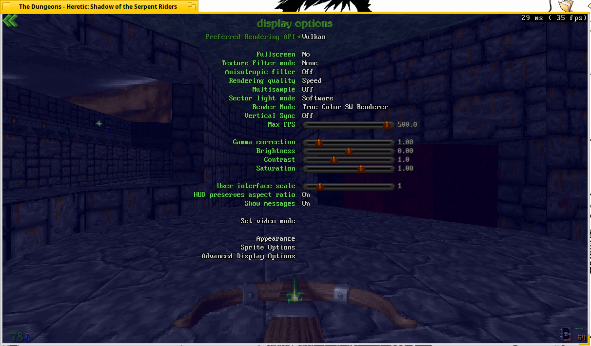 GZDoom’s default video preset is a bit… much, it has both hardware acceleration and texture filtering (yuck!) on by default, which is stuff that can tank performance on most installs.
