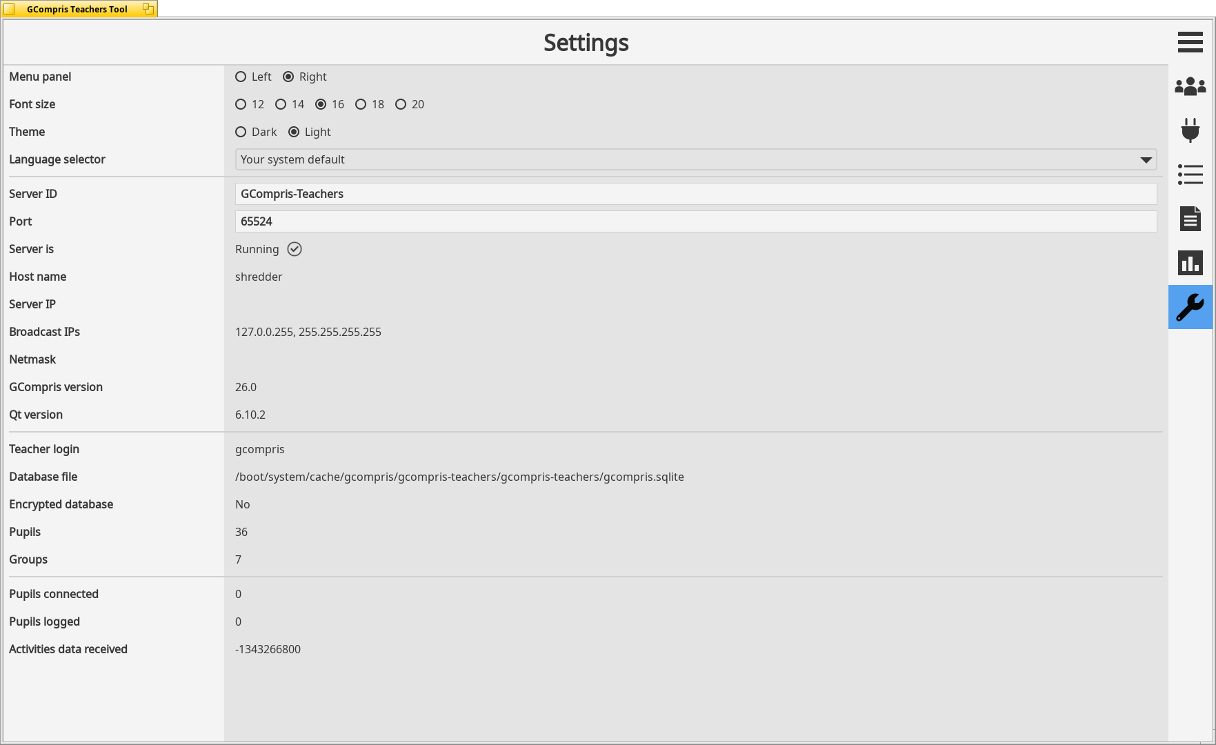 The collection comes with 197 activities, including 2 new ones: “Drawing wheels”, an activity for drawing with a gear rotating in a cogwheel; and “Multiple choice questions”, an activity that can be enabled through GCompris-teachers.