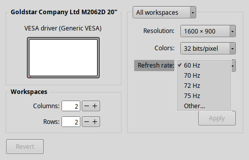 screenmode -l only shows me 60 Hz for 1600x900 either way.
