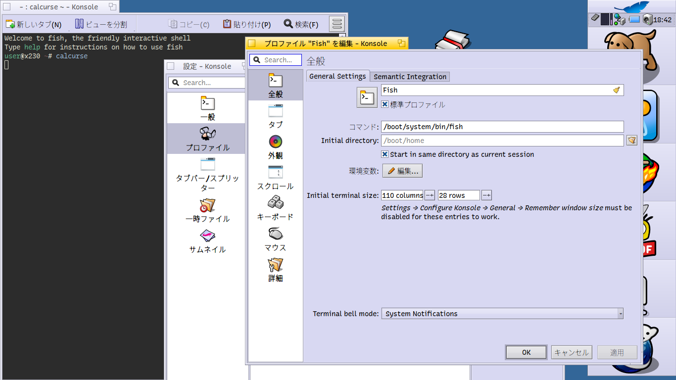 I’m using Konsole as my Terminal on Haiku, and have set it up (as below) to use the fish shell.