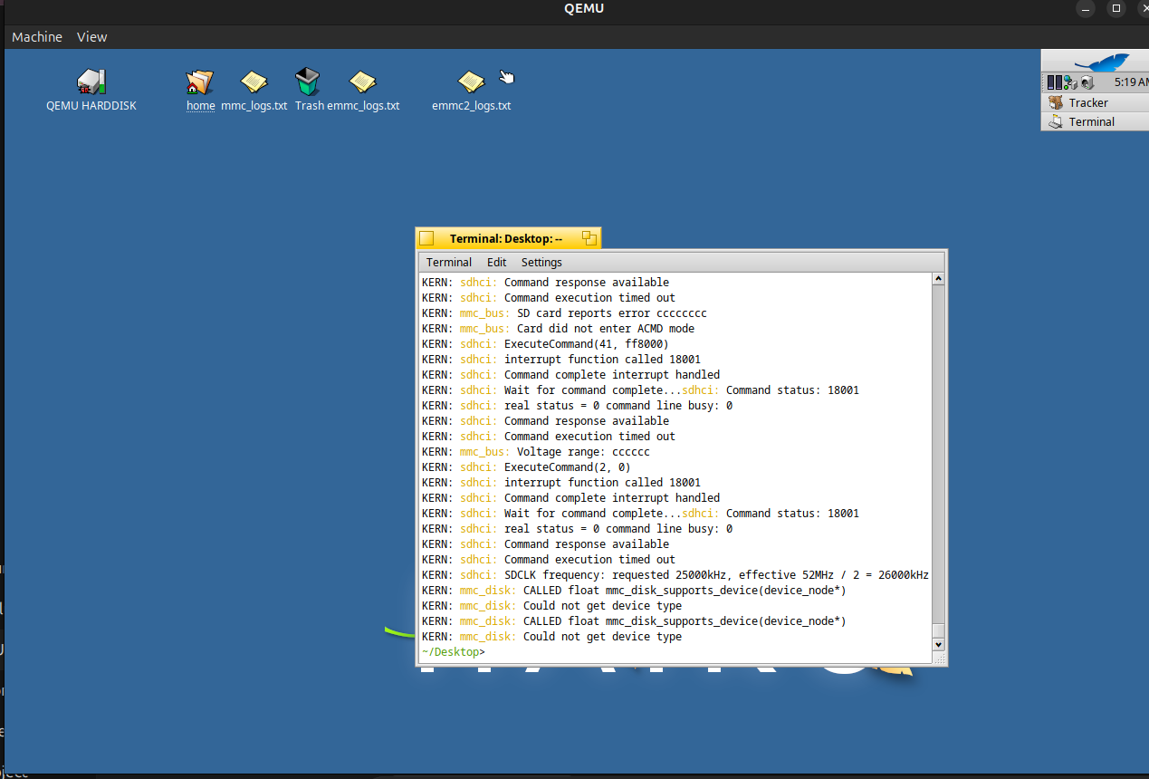 So that’s the first thing to change: fix the detection of failed CMD55, and make the mmc_bus manager switch to MMC initialization commands in that case.