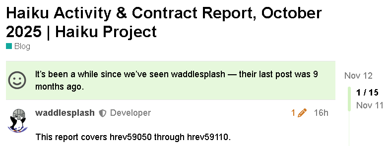 The posts get automatically created under the @Haiku account, and then manually changed to be authored by me. The forum software gets confused between the two sometimes it seems…