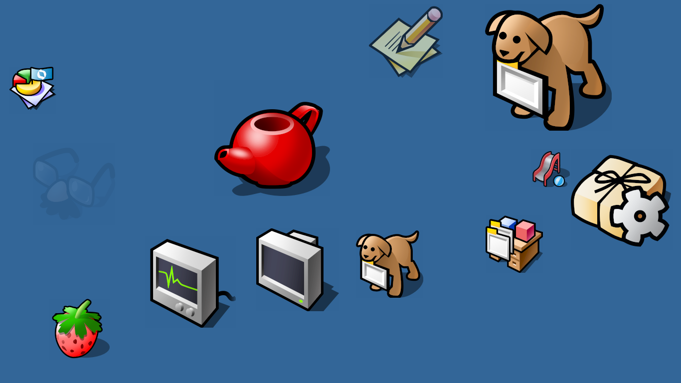 Isometric Perspective: The icons used a consistent isometric projection, giving the desktop a sense of physical depth without looking cluttered.