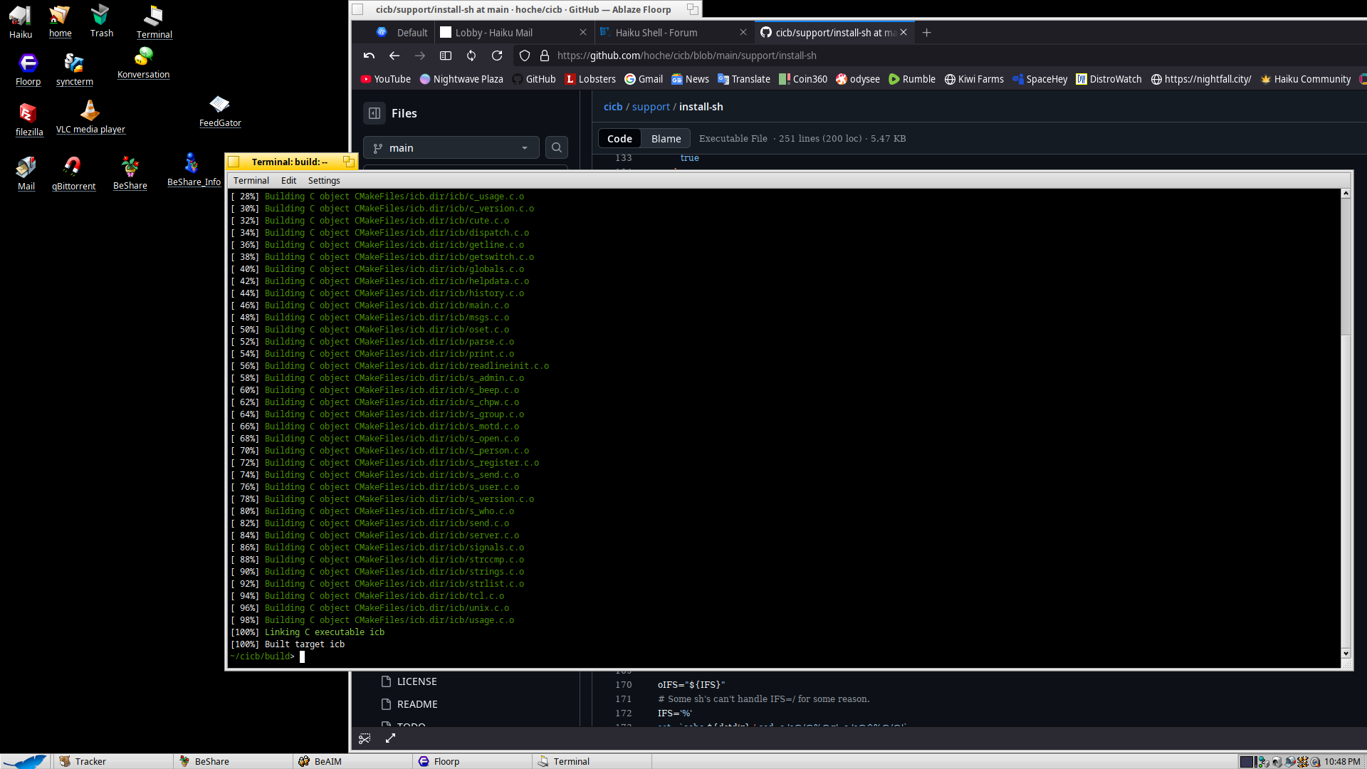 me getting an icb chat client working on Haiku after editing the cmakelist file and linking some libraries