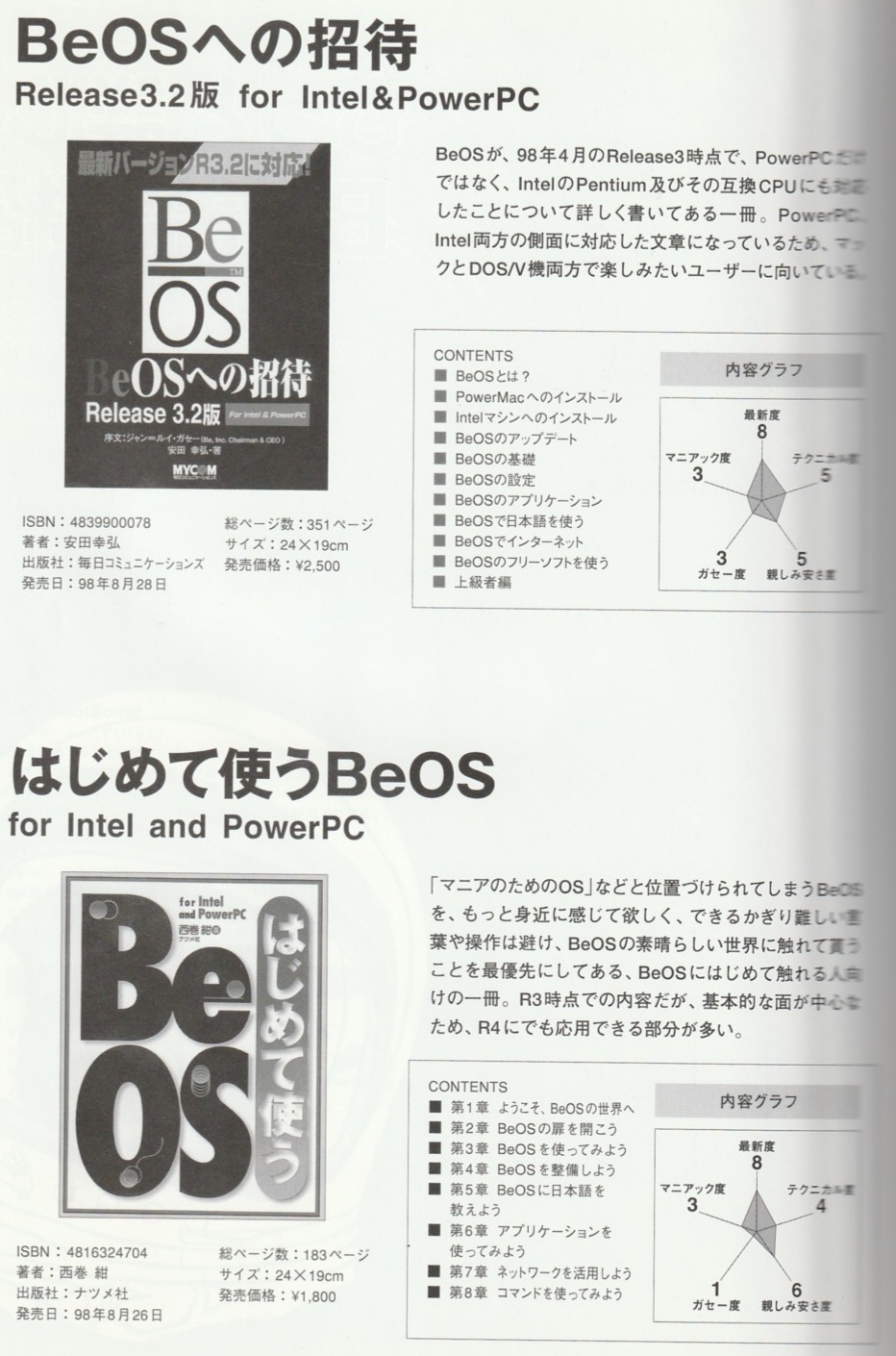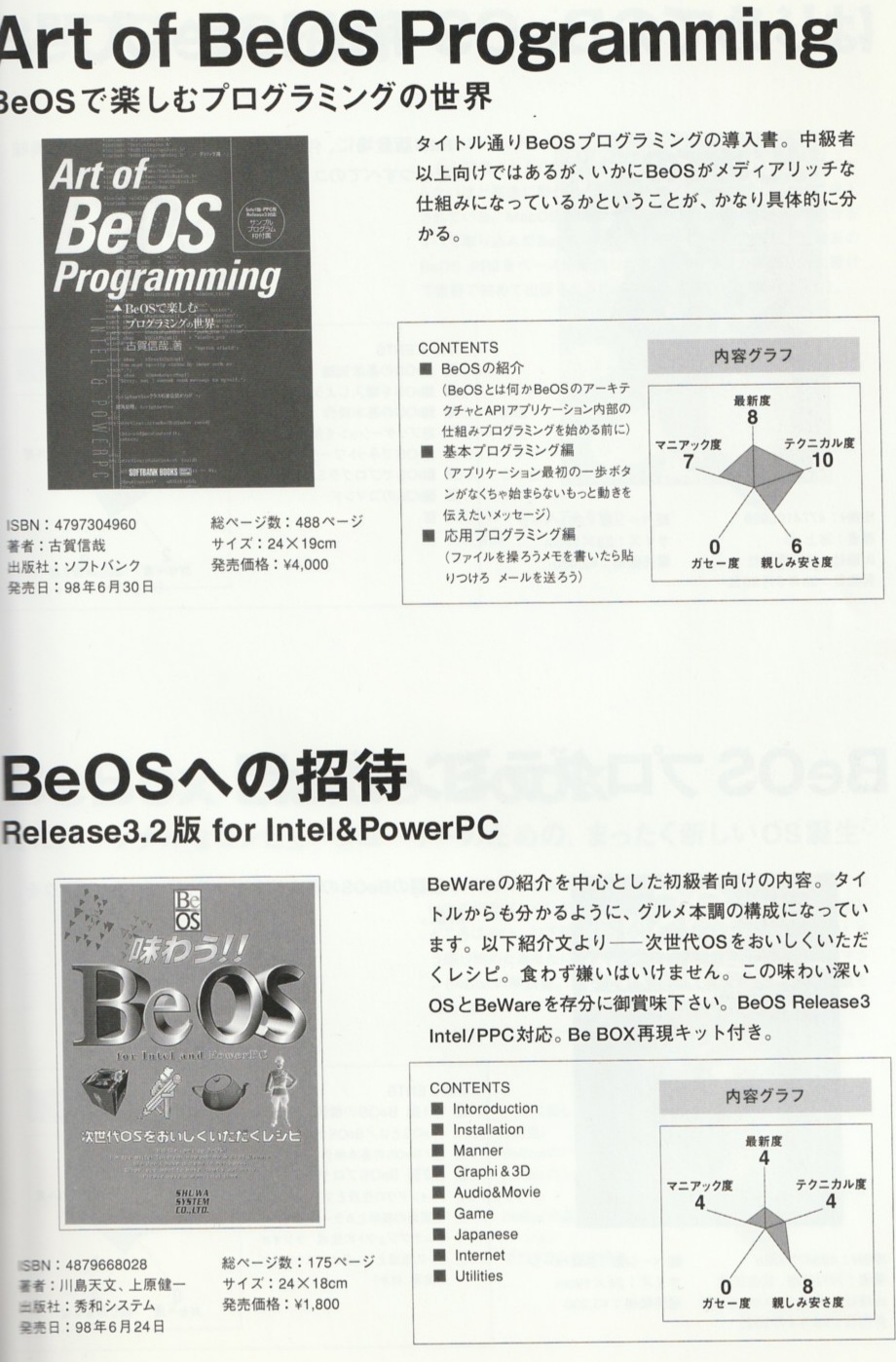 Lots of them are in Japanese, including translations of the BeOS Bible (in 2 volumes), âPorting Unix Applicationsâ and the OâReilly"Programming the Be Operating System".