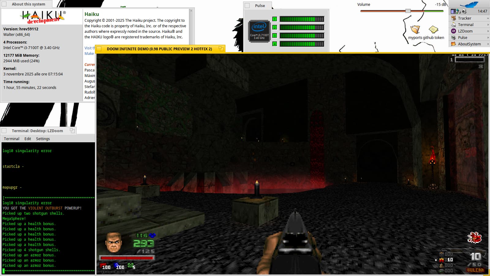 I’ve been trying to play the Doom Infinite mod under Haiku, it wants a ZDoom-compatible source port and requires hardware acceleration to play.