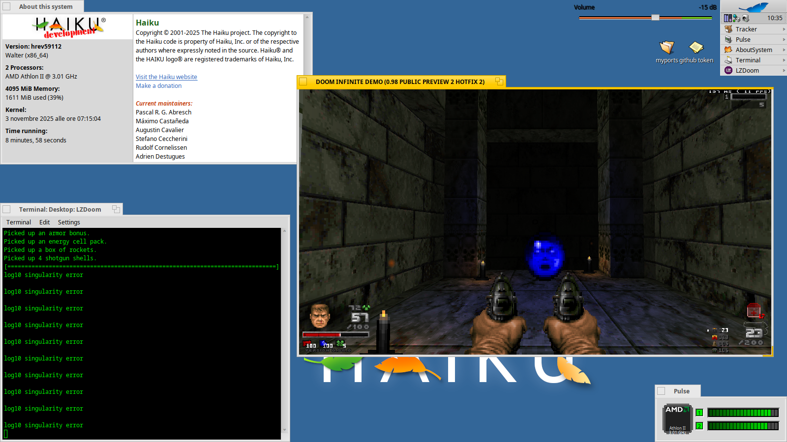 I took another stab at updating GZDoom for Haiku and the newest version’s starting UI (ZWidget) is fully active within a couple of seconds (on this 15-yo pc that can’t really handle GZDoom in software mode) compared to my attempt a few months ago where it demanded way too much time.