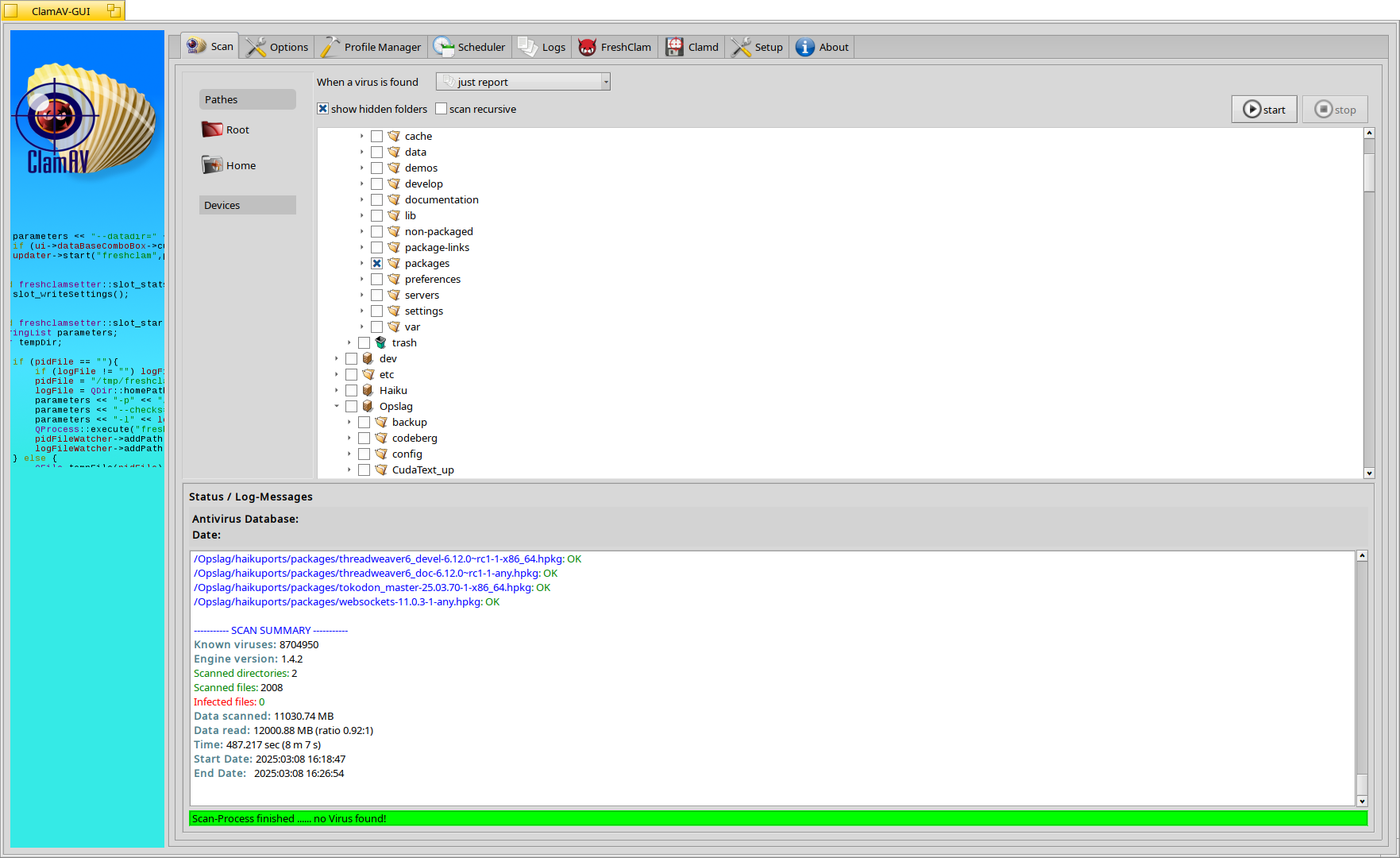 Checked the work from @kallisti5 and it came up empty, I’ve also got the gui for ClamAv up and running for some time. ![]()