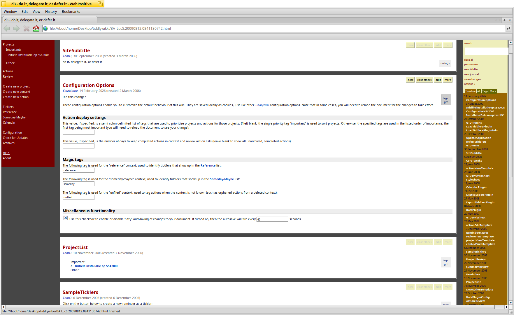 Haven’t used tiddlywiki in years, a while ago played a bit again with it, and seem to work OK here, but since I don’t have a need for it, I never looked back at it again.