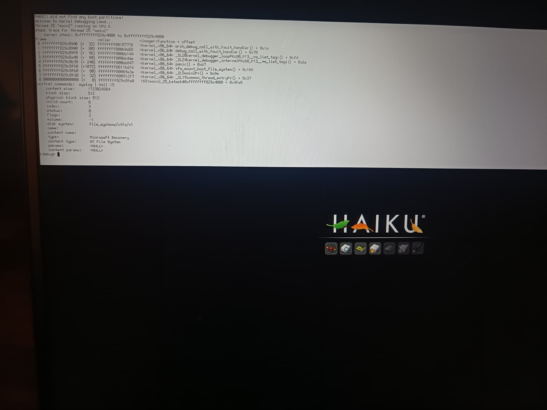 ChatGPT explains that USB-C is Thunderbolt, and not compatible with booting Haiku on ThinkPad. C only gets to the fourth square on the splash screen, and gives an error message that it could not find boot partitions.
