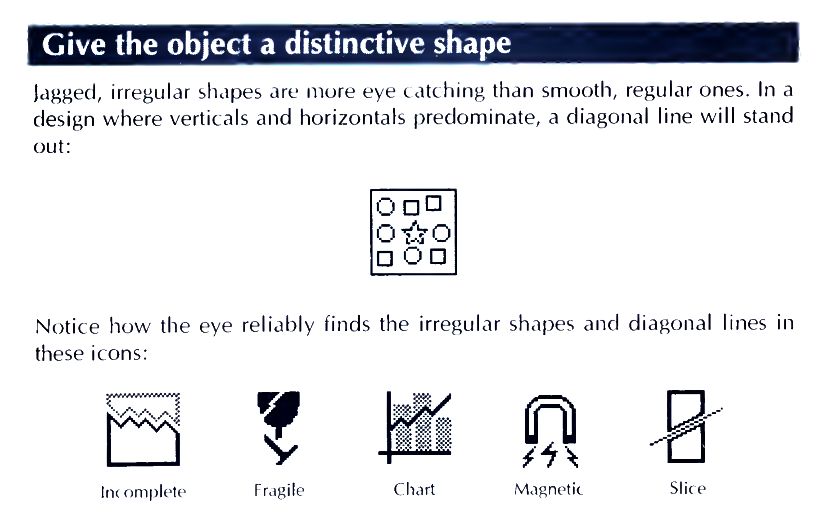 Here’s an interesting bit where it describes the primal-elements of an icon’s geometry being significant in themselves. Throughout the book, the author (consciously or not) outlines a good case for an OS without words: