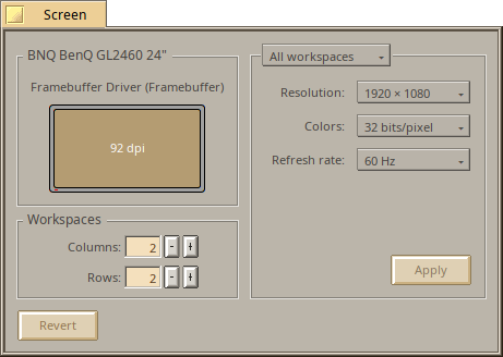 That would be great, if some one can code it up! I thought maybe it might be easier to implement multiscreen by simply mapping workspaces. Only one system doing both things, not a matrix or multiple multiple things (I guess the current issue is lack of drivers, not mappings). This Twitcher screen capture does suggest that workspaces are mapped to screens! Of course only workspaces mapped to screens would work that way, the remainder would work as they do now. The only problem I saw with this mapping was the relative position of workspaces to match screens locations.